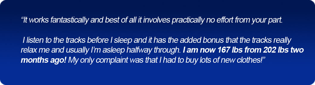 The Neuro-Slimmer System™ has been specifically engineered to emulate the exact environment you’d experience if you visited Miss. L (your Master Hypnotist) in her Ohio-based clinic.